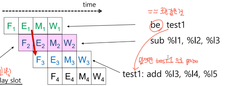 분기 명령 다음에 오는 명령어를 무조건 실행하는 것으로,