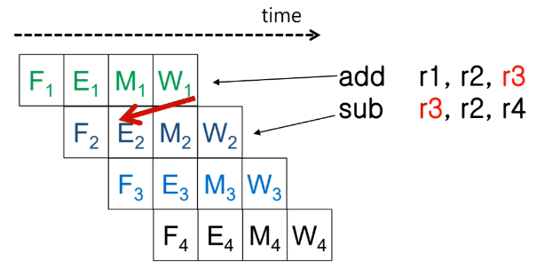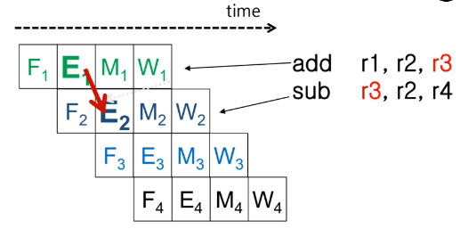 sub 명령어를 실행하는데 필요한 r3 데이터는 add 명령어의 실행 결과로 생성된다.