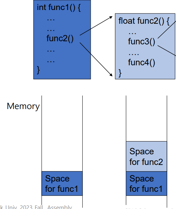 먼저 함수를 사용하기 위한 스택 프레임을 할당하고,
