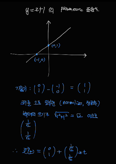 한번 예시로 y = x + 1 이라는 식을 parametric 표현식으로 표현해보자.