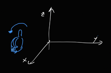 보통 수학에서 사용하는 좌표계는 오른손 좌표계를 사용한다.
