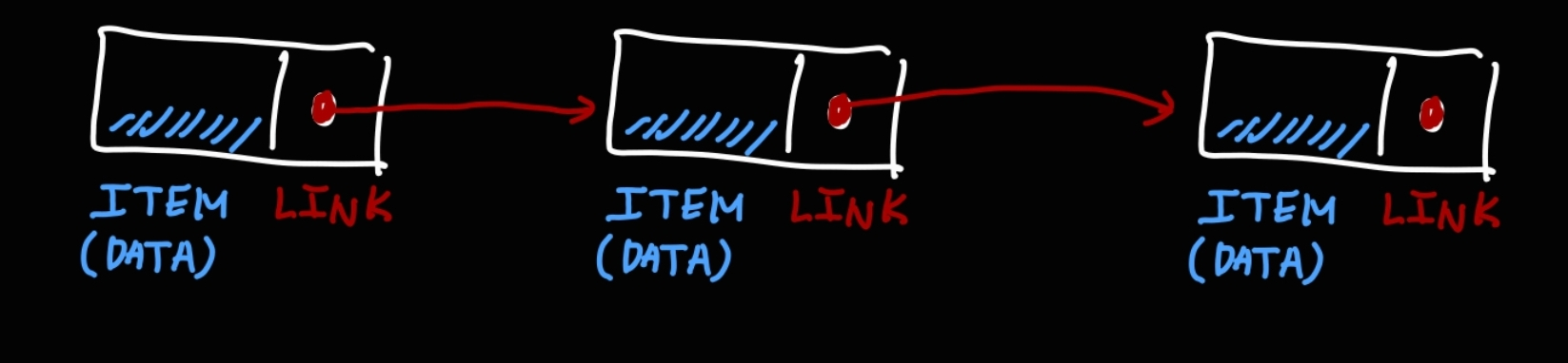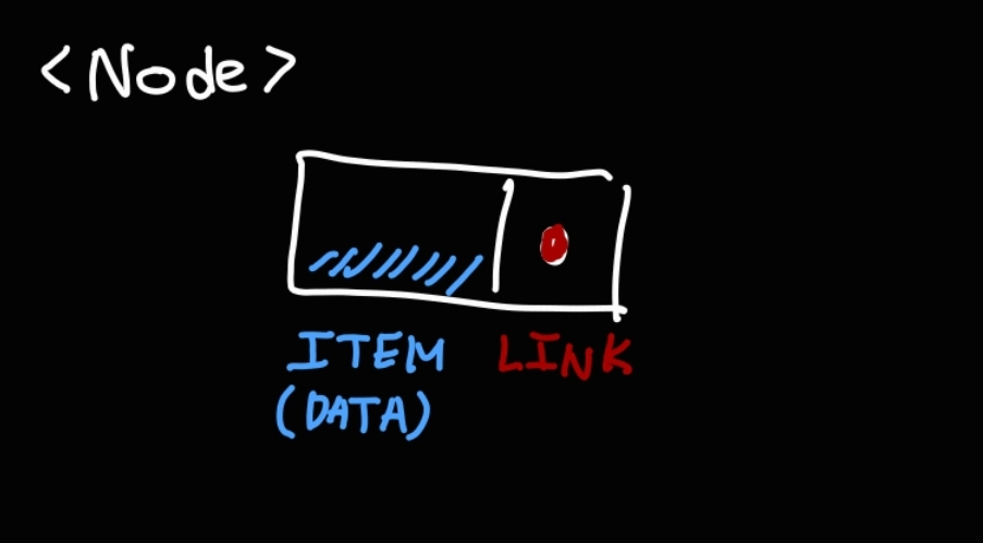 노드에는 데이터가 담겨있는 ITEM 파트와, 연결된 다음 노드의 메모리 주소가 담겨있는 LINK 파트가 있다.