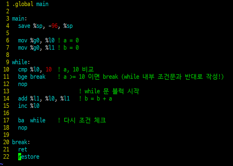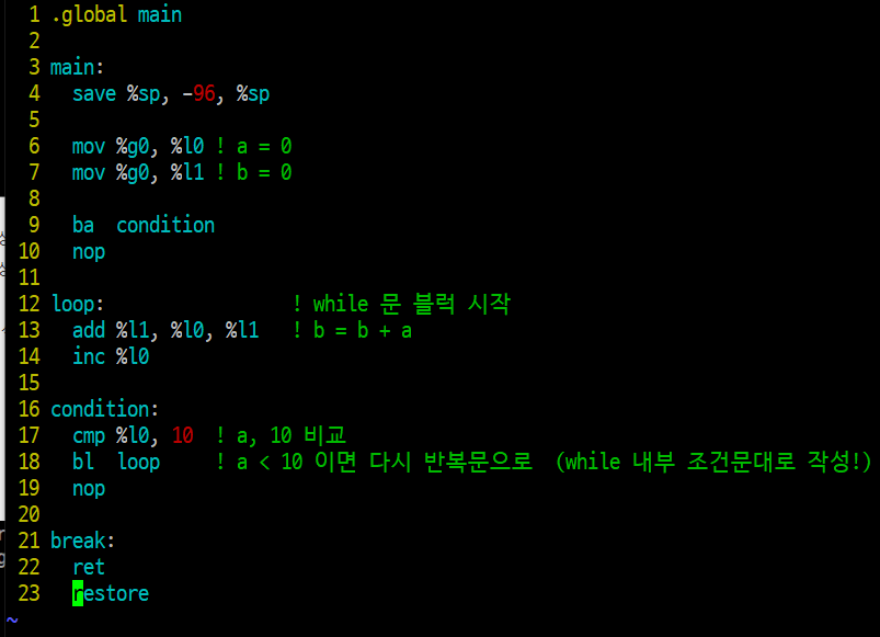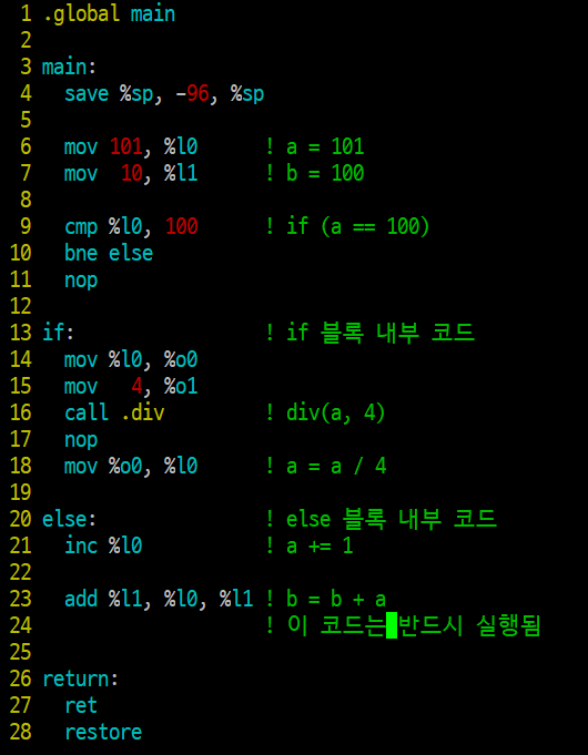 아래와 같은 코드를 SPARC 로 작성해보고자 한다.