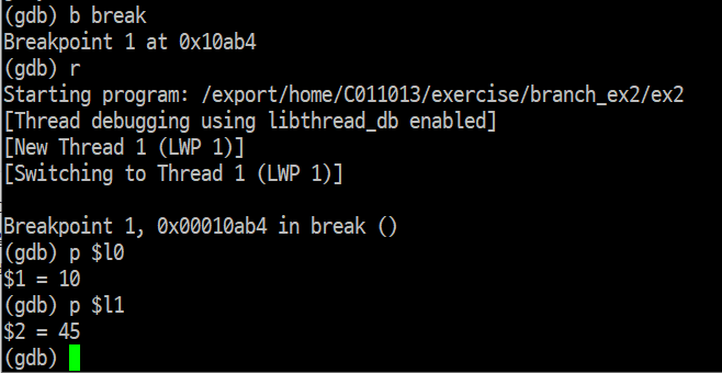 b 값이 들어있는 l2 레지스터에는 예상한대로 45 값이 들어있다.
