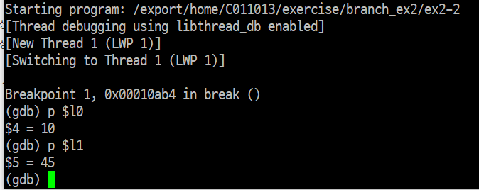 b 값이 들어있는 l2 레지스터에는 예상한대로 45 값이 들어있다.