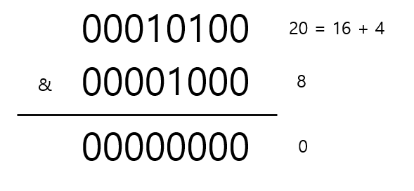 8의 배수가 아닌 -20에 & -8 연산을 한 결과를 살펴보자.