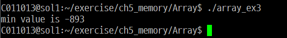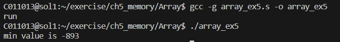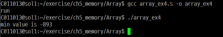이제 상대주소를 이용해서 배열을 순회하고 최소값을 찾도록 예제를 개선하였다.
