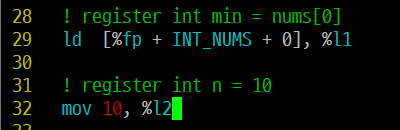 따라서 min, n 변수도 레지스터로 선언해보자.