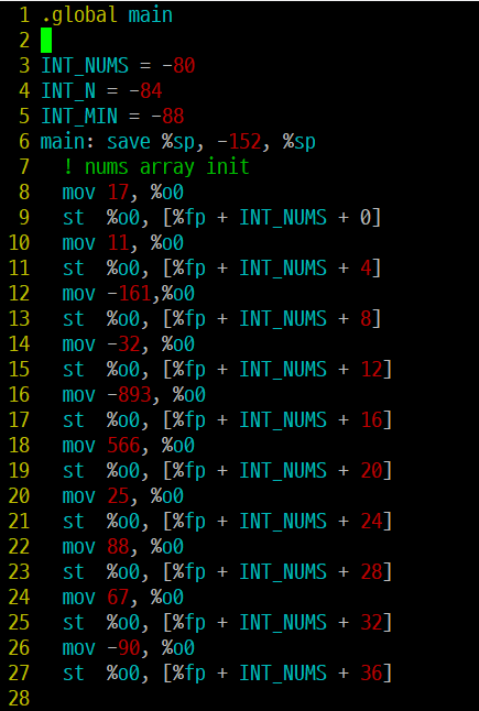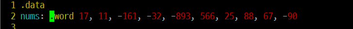 nums: .word 17, 11, -161, -32, -893