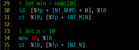 ld [%fp + n], %o0 !% o0 = n = 10
