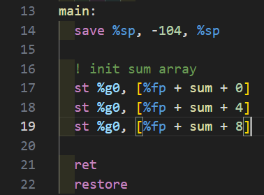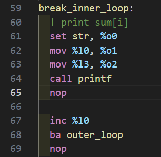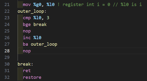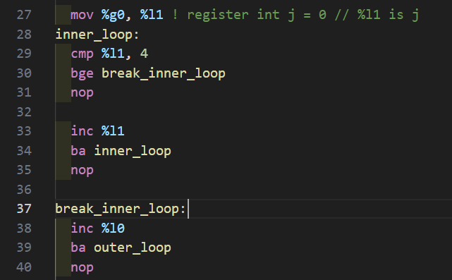 i, j 는 각각 %l0, %l1 을 사용하는 것으로 하고, 이 두 l-register는 다른 용도로 사용하지 않도록 하자.