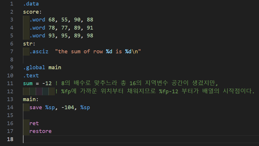 이제 이것으로 주어진 C 코드를 수행하는 코드는 작성이 완료되었다.