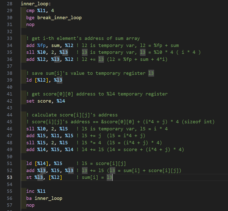 먼저 sum[i] 에 접근하기 위해 이 주소값을 계산한다. (이 부분은 사실 outer_loop 에서 수행하는 것이 더 효율적이긴 하다)