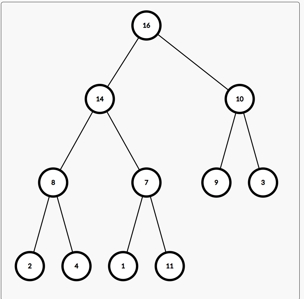 위와 같은 모습이 Max Heap 의 한 예시이다.