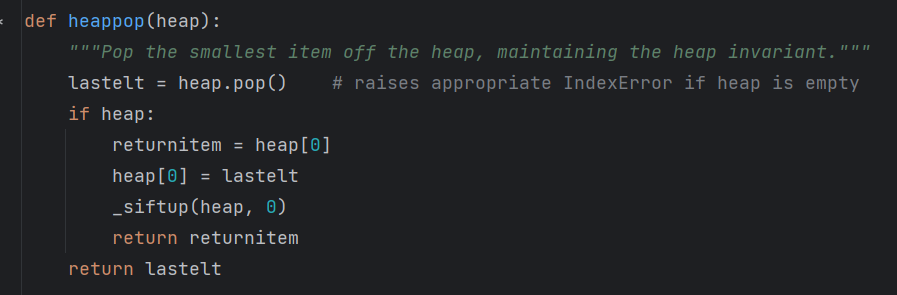 => 코드를 보니 이게 파이썬의 heapq 모듈에서 구현한 heap pop 방식이다.