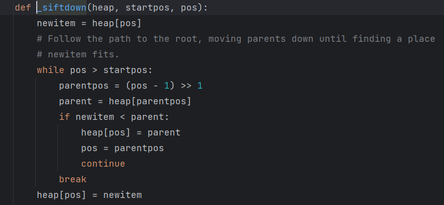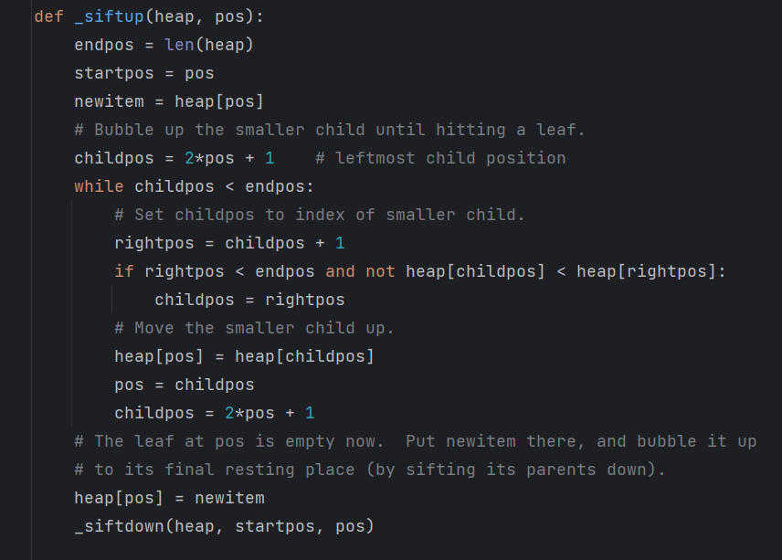 (파이썬 코드를 보면 siftup 코드에서 마지막에 siftdown 함수를 호출한다.)