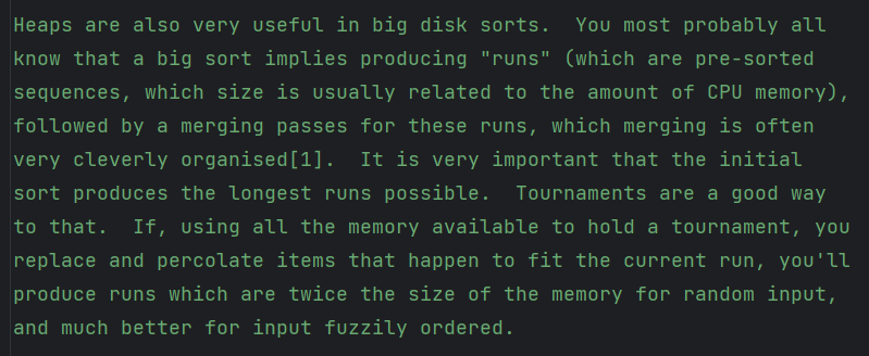 그리고 직접 비교해보니 heappush 를 1000 번하기보다 가능하다면 heapify 로 이미 구성된 배열을 heap 으로 만드는 것이 더 효율적이었다.