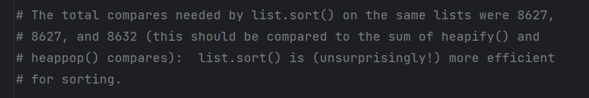 그리고 데이터를 단순히 정렬하는 게 목적이라면 그냥 list.sort() 를 쓰는게, heapify 해서 힙으로 만들고 1000번 pop 하는 것보다 효율적이었다.
