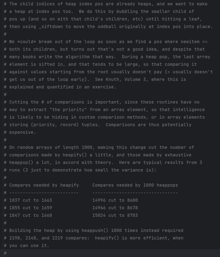 커팅 결과, heapify 는 소폭 비교횟수가 감소했고, heappop 은 대폭 비교횟수가 감소했다.