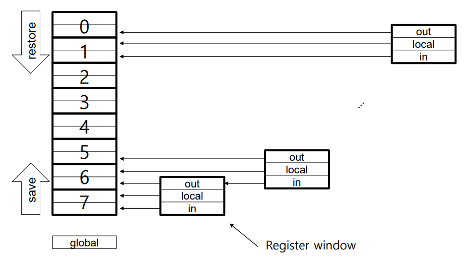 SPARC 에서는 각 서브루틴마다 24개의 레지스터를 할당받는다.