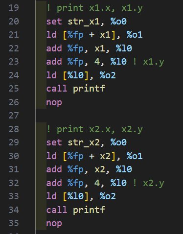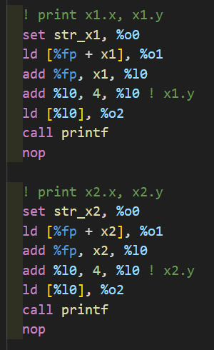 x1.y 와 x2.y를 출력할 때, %fp + x1/x2 + 4 가 아니라 %fp + 4 위치의 메모리 값을 출력해서 발생한 문제였다.