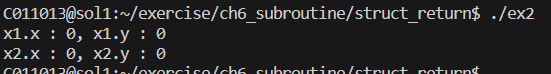 zero 함수는 내부에서 지역 구조체 변수를 갖는다.