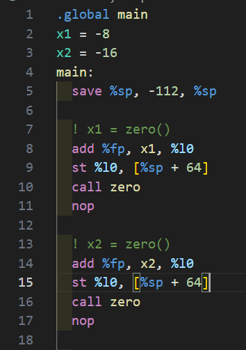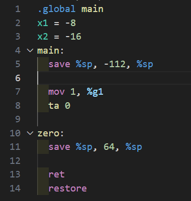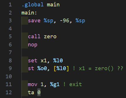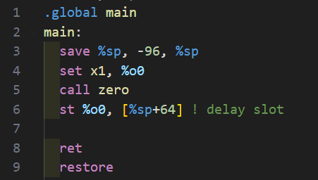 main 함수에서는 zero 함수를 호출하고, 그 결과를 %o0 에서 받은 뒤,