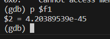 f1 에는 저 00000003 16진수 비트가 그대로 들어가게 되는데, f - register 는 이 비트를 실수표현으로 번역하므로 값을 출력해보면 다른 값이 나올 것이다.