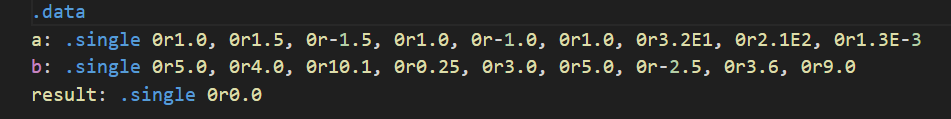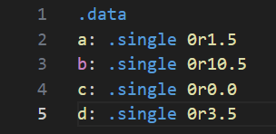 .data 섹션에 단정밀도 공간을 할당하는 방법은 아래와 같이 하면 된다.