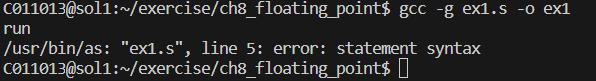 참고로 만약 레지스터에 실수값을 바로 쓰고 싶다면 절대 mov 1.5, %f1 과 같은 형태로 쓰면 안된다.