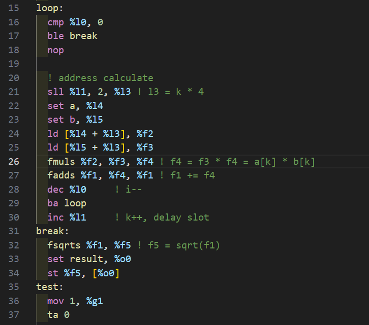 강의록과 비교해서 한가지 재미있는 차이점을 보자면, 강의록에서는 cmp 대신 subcc %l0, 1, %l0 를 사용했다.