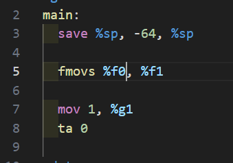 마지막으로 3.0의 부동소수점 표현을 %o0에 저장한 뒤, 이를 메모리를 거쳐 f4에 저장하면