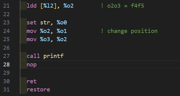 반대로 return 값을 fpu에 보내고 싶을 때도 기본적으로는 i 레지스터에 반환값을 넣어서 반환한 뒤, 그 값을 부모함수의 o 레지스터로 받아서 메모리를 경유해 f 레지스터로 보내면 된다.