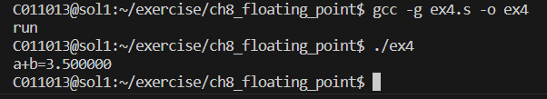 읽어온 데이터는 짝수번째 fpu register 에 저장하였고, f4f5 에는 f0f1 + f2f3 의 값을 저장한다.