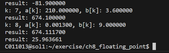 예상 기댓값은 기존 단정밀도 예제에서와 같이 25.xxx 값이 출력되어야 한다.