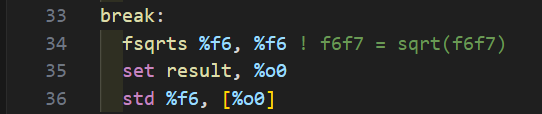 fsqrtd %f6, %f8 ! f8f9 = sqrt(f6f7)