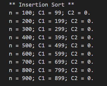 삽입 정렬은 언제나 비교 횟수가 언제나 N(N-1)/2 번으로 고정되어 있다.