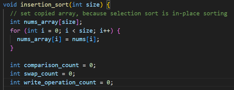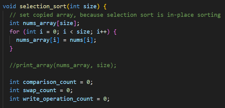 비교 횟수를 카운팅하는 부분은 (min_value > nums_array[i]) 라는 비교를 몇번이나 하는지를 카운팅하는 것이다.