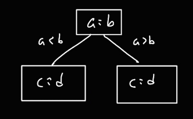 a, b 비교를 한 뒤, 그 결과를 확인하고, 다음으로는 c, d 를 비교한다.