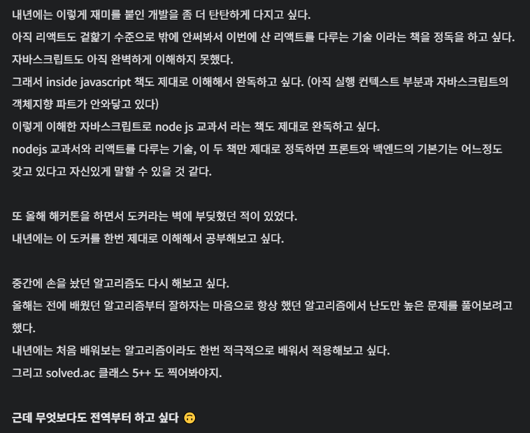 그래서 내년에는 개발말고도 그 외적인 부분에서도 여러가지를 이루고 싶다.