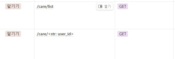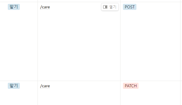 그런데 현재 '맡기 데이터를 수정' 하는 API는 맡기 데이터를 생성한 사용자가, 이를 수정하려고 할 때 사용하는 API 로 의도를 잡았다. 그래서 이 상태를 변경하고자 할 때 PATCH /care 를 사용하는 것은 옳지 않다고 생각하여 1월 15일 회의를 진행한 뒤 status 변경을 위한 별도 API를 만들었다.