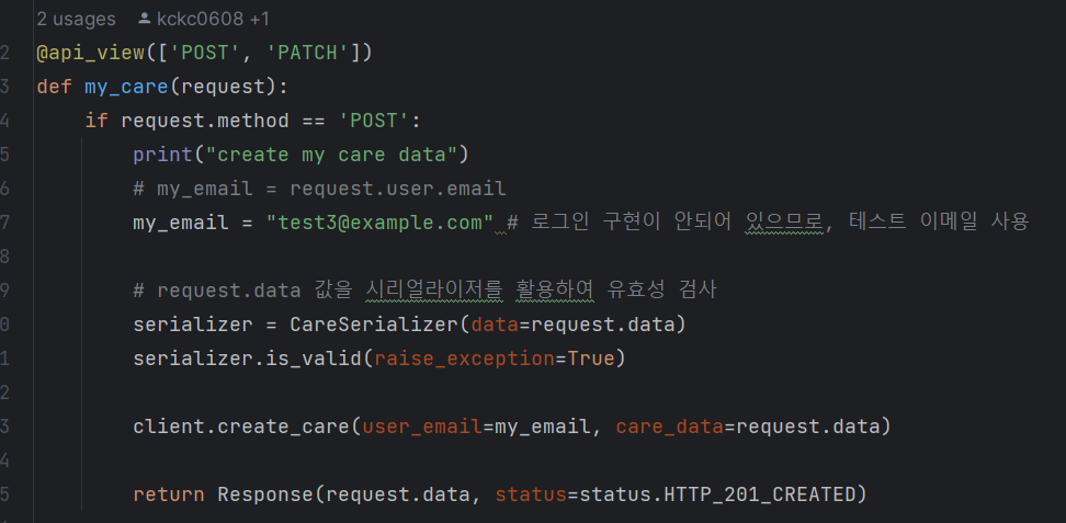 나는 DB에서 데이터를 가져오는 코드를 작성하였고, 다른 백엔드 팀원은 가져온 데이터를 응답 형태에 맞게 바꾸는 시리얼라이저 코드를 작성하였다.