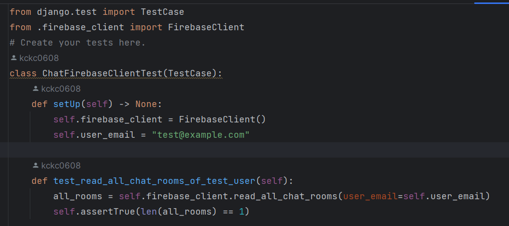 또한, firestore 데이터베이스와 소통하는 일종의 manager 역할을 하는 클래스의 기능을 테스트 하기 위해 python manage.py shell 을 이용하는 것이 번거로워서 (드디어) 테스트 케이스를 작성하기 시작했다.