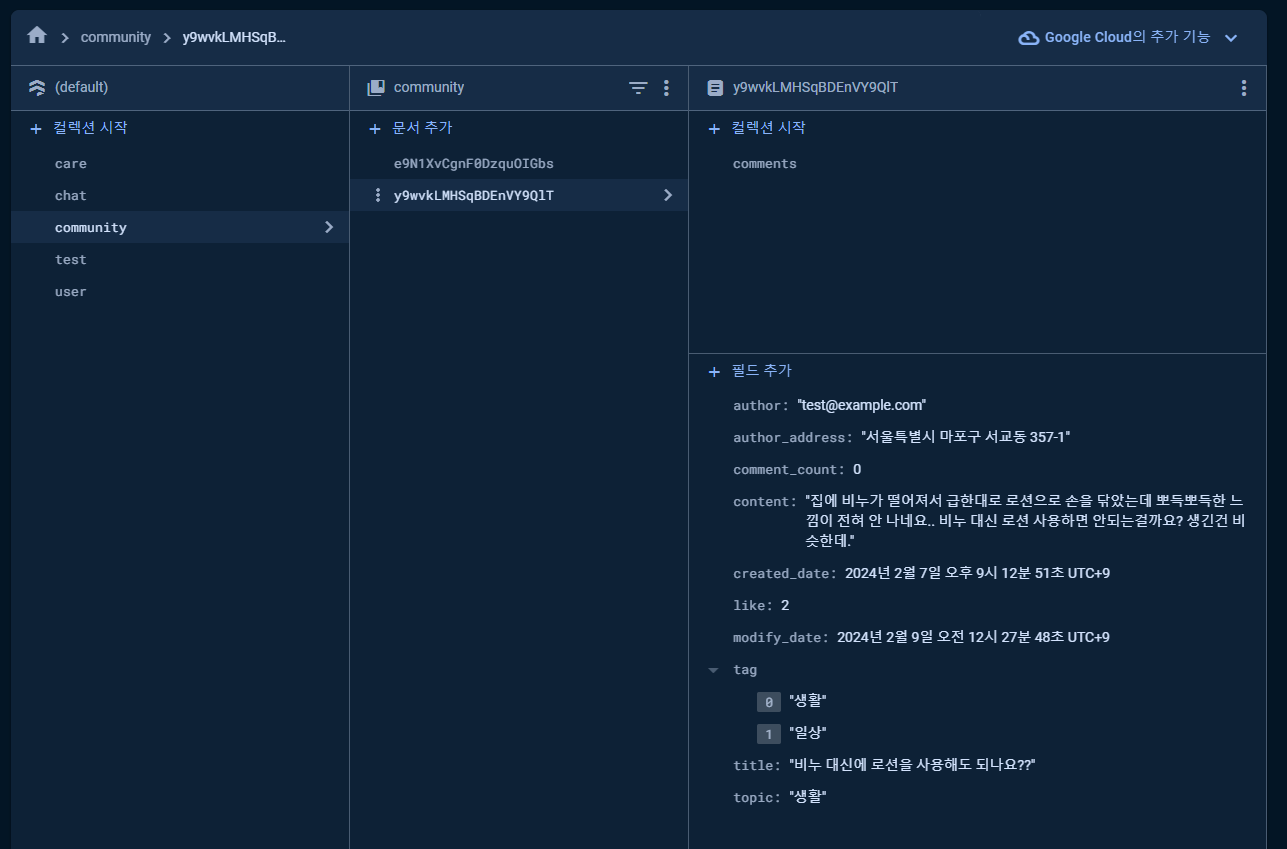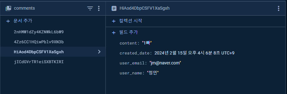 그런데 지금 생각해보니 댓글 개수 정보는 하위 컬렉션에 저장해두고 매번 API 호출 시 댓글 컬릭션의 문서 갯수를 세서 반환하므로 굳이 DB 필드로 존재할 필요는 없었을 것 같다.