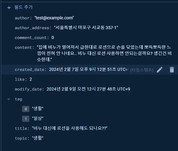 문서 필드는 위와같이 구성하였다.