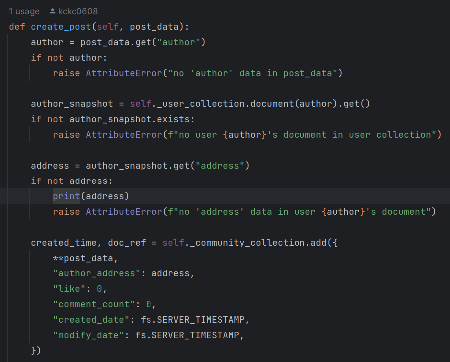 게시글을 작성하면, 게시글 document 에 작성자 정보를 같이 저장하기 위해 user collection 을 참조해야 했다.