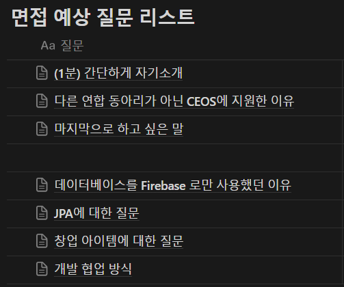 CEOS 동아리는 후기가 많이 없어서 다른 IT 연합동아리 면접 후기를 찾아보고, 내 자소서를 읽었을 때 면접관이 궁금할 것 같은 포인트를 미리 정리했다.