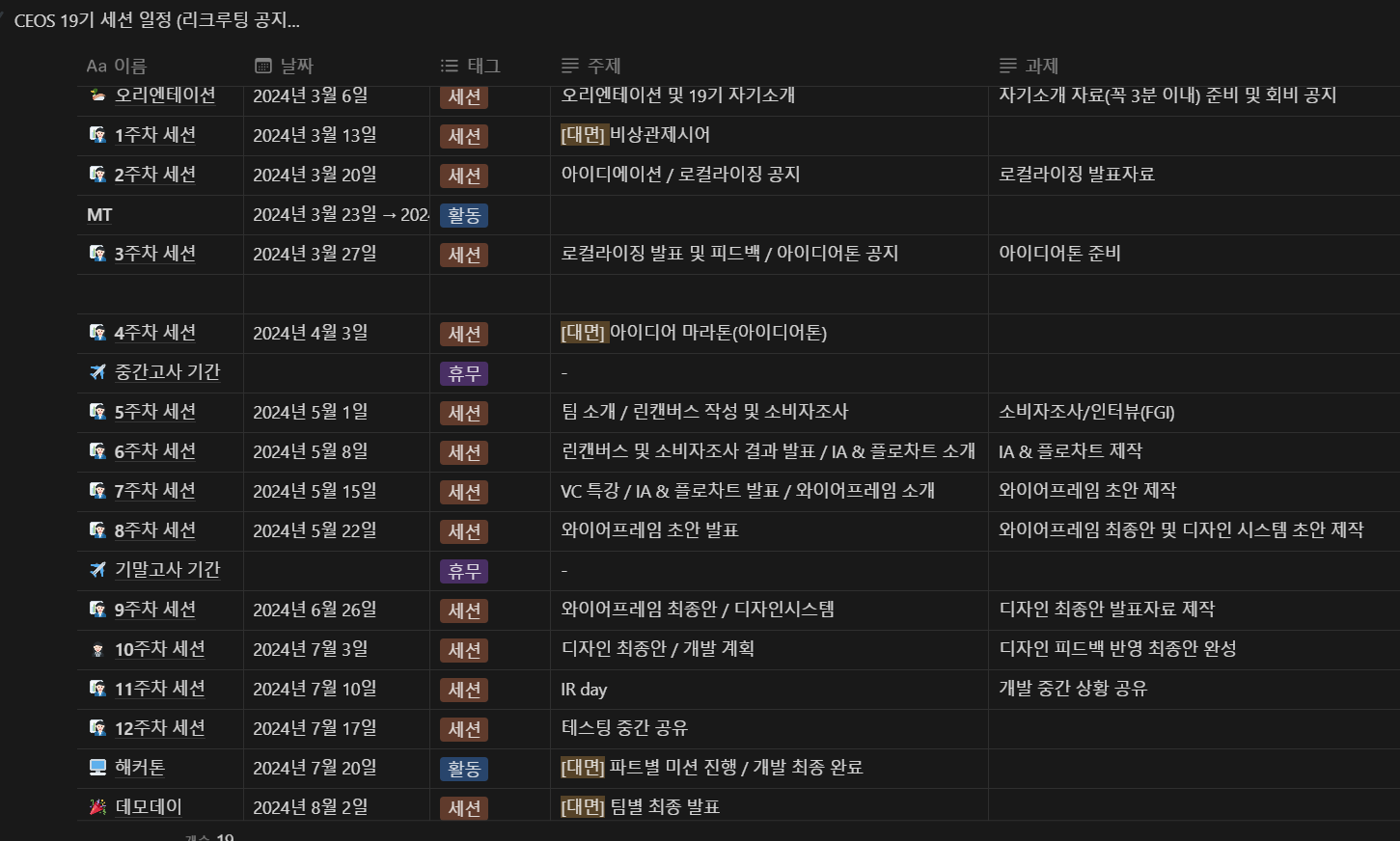 7. [공통] 이번 학기 일정을 구체적으로 알려주세요.