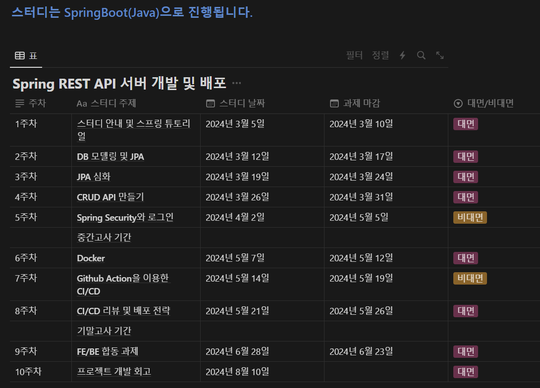 스터디 커리큘럼은 위와 같이 나와있었다.
