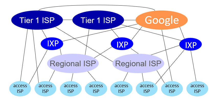 하지만 네트워크는 단순히 ISP와 ISP가 연결되고 각종 host는 ISP와 연결되는 구조가 되지 않는다.